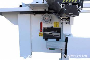 Standard má: naklápěcí čepel průměr 300, průměr rytce 90, tlustý eloxovaný hliníkový vozík namontovaný na nastavitelných koulích, otočný eloxovaný hliníkový řádek čepele s dvojitým čtením, robustní opěrnou plochu s eloxovaným hliníkovým kontrolním pravítkem roztažitelným až na 3200 mm, frézovaný na 2 stranách, nezávisle nastavitelný velký kryt vřetena odlévaného pod tlakem, dlabačka s velkým nastavitelným litinovým vrškem, má 2 samobrzdící motory od 3 hp do 220 voltů, 4 hp do 380 voltů, 5,5 hp na vyžádání, individuálně chráněné. Odpovídá nejnovějším předpisům CE.
