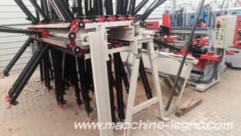 automatic multi-shelf rotary press for gluing plates, mechanical screwing with a pneumatic wrench. Original American production press, completely renovated. All elements are new