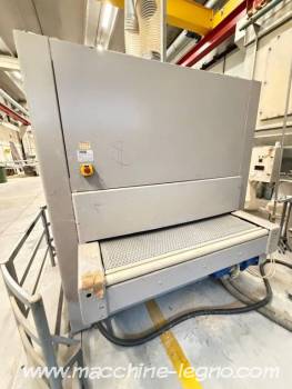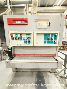 Equipped with 2 large-width upper sanding belts, with a calibration roller and sanding rollers, for sanding wooden panels and veneered surfaces.