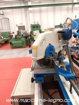 con posizionatore a controllo numerico per taglio di cornici, profili in legno, mobili, infissi in legno, porte, materiali plastici e varie